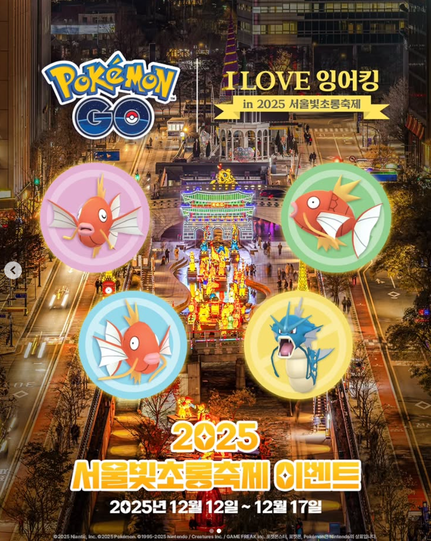 포켓몬코리아가 공식 발표한 이번 이벤트는 서울빛초롱축제의 특별 테마 섹션으로, 청계천 물길 위에 약 100여 마리의 잉어킹 등불과 대형 갸라도스 설치물이 전시됩니다.